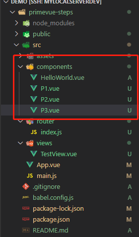 2.2 创建测试视图(view) 在 primevue-steps/src/ 目录下创建目录 views,用于存储视图(primevue-steps/src/views),在此目录下创建视图文件 TestView.vue