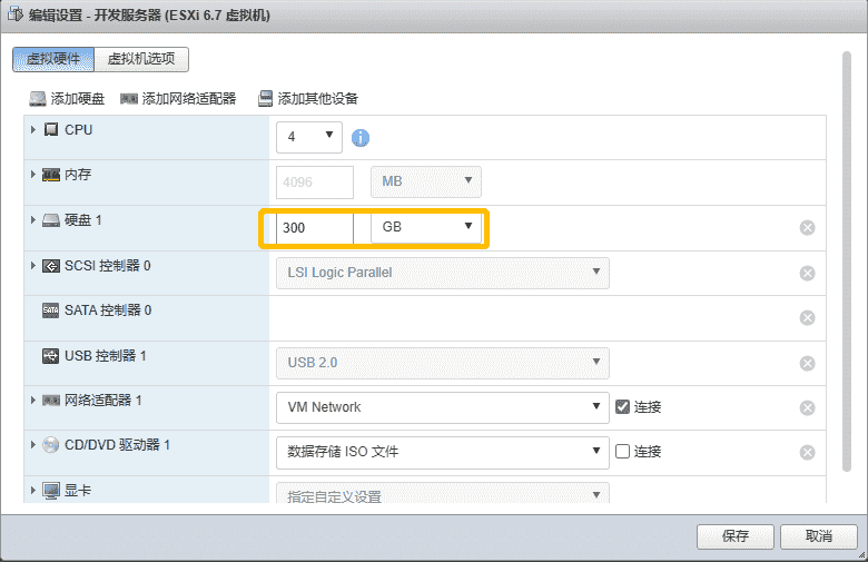 2.2、增加虚拟机的磁盘容量 首先在 ESXI 管理面板上增加虚拟机的容量